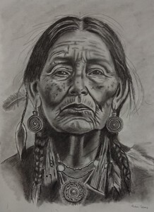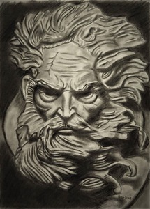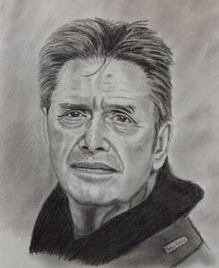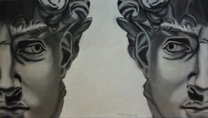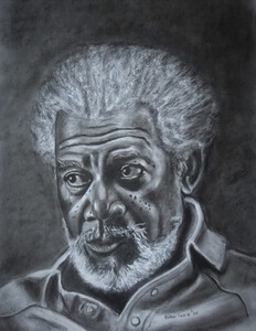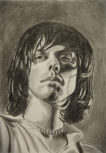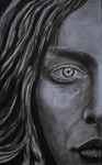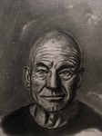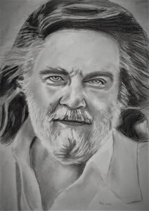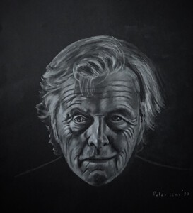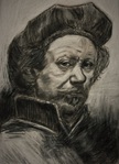 2019Zelfportret van Rembrandt van Rijn in grijstinten.
