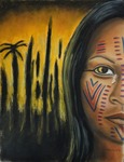 2019Halfportret van een Amazone bewoner tijdens de bosbranden