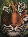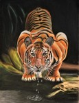 2018Drinkende tijger wordt gestoord door naderende fotograaf.